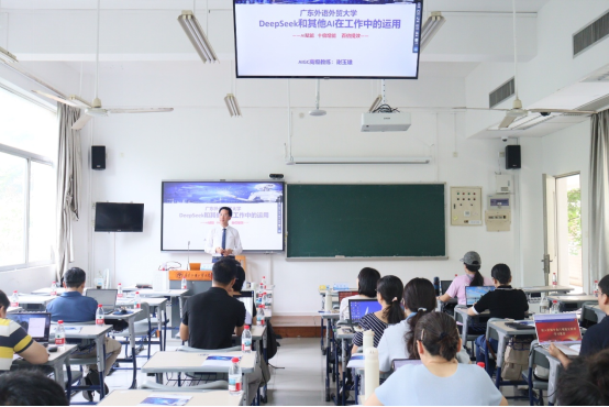In line with the Ministry of Education’s 2025 Digital Education Strategic Action Plan and GDUFS’s arrangements for Teaching Practice Week, School of Business (SoB) hosted a special training program on “AI-Driven Solutions for Teaching Innovation” from July 9 to 11, 2025. The program aimed to actively explore innovative applications of artificial intelligence in education and to support the digital transformation of teaching at SoB. Associate Dean ZENG Chuhong, together with over 30 faculty members from various departments, participated in the training throughout.