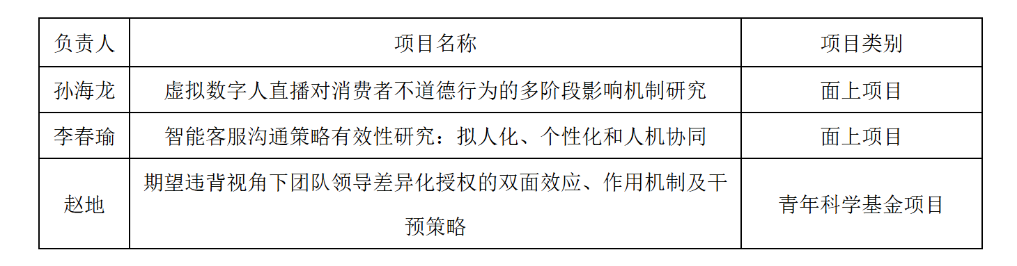 On August 23, 2024, the National Natural Science Foundation of China (NSFC) released the “Announcement on the Review Results of Received Applications for the 2024 National Natural Science Foundation Projects”, officially announcing the funding decisions for this year. School of Business (SoB) gained funding for three projects: Associate Professor SUN Hailong and Associate Professor LI Chunyu received funding under the General Program, while Dr. ZHAO Di was granted a Young Scientists Fund project. Looking ahead, SoB will continue to improve its research organization and management, strengthen incentive and support systems, foster a vibrant research environment, and guide faculty members to produce more high-quality research outcomes, thereby driving new progress and breakthroughs in the research development of SoB.