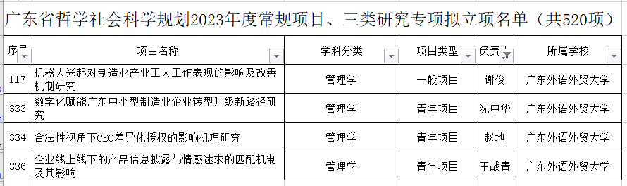 Recently, upon approval by the Guangdong Provincial Philosophy and Social Science Work Leading Group, projects proposed by Professor XIE Jun and Lecturers SHEN Zhonghua, ZHAO Di, and WANG Zhanqing of SoB were approved as 2023 Guangdong Provincial Social Science Planning projects.