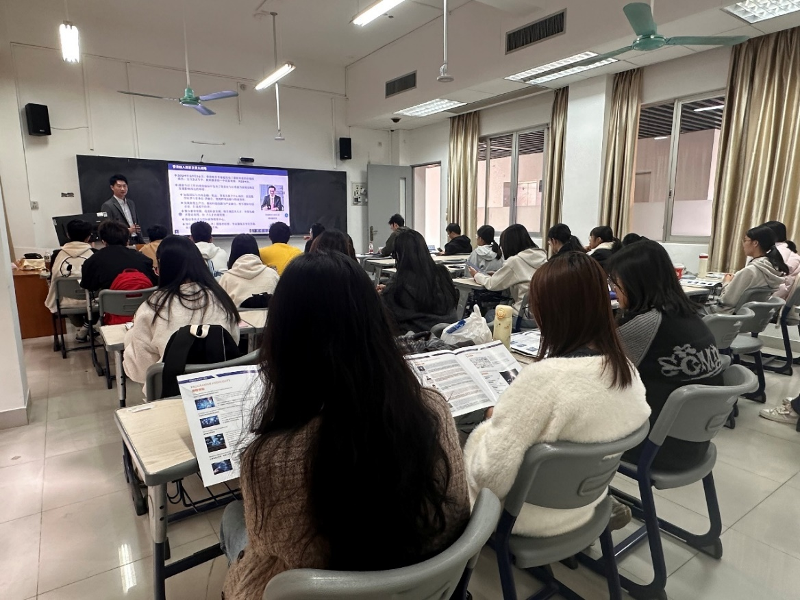 On the afternoon of December 12, 2024, Professor LI Zongxi from the School of Data Science, Lingnan University (Hong Kong), together with his delegation, was invited to Guangdong University of Foreign Studies (GDUFS) to deliver an admissions briefing for the master’s program in Room 214, Teaching Building F. The event was hosted by Associate Professor QU Yingying, Director of the Innovation Class Teaching and Research Office, and was attended by Mr. HUANG Yongjie, Secretary of Teaching Affairs of School of Business (SoB), along with the 2024 cohort of the Business Intelligence Innovation Program. At the conclusion of the event, Associate Professor QU Yingying gave a summary, highlighting the importance of academic exchange and encouraging students to actively engage in international exchanges and practical activities to further enhance their academic and language skills. She also offered advice to students on their future academic development and career path. She noted that the Innovation Program will co-host a cutting-edge international study program with the School of Data Science at Lingnan University, themed “Data Science and Business Applications”. She also encouraged students to take an active part in it.