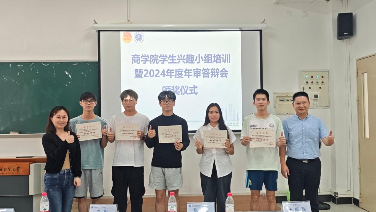 To further energize student interest project groups, promote peer exchange and learning, and strengthen their role in enriching campus culture and enhancing educational outcomes, School of Business (SoB) held the annual review and defense meeting for student interest project groups on the afternoon of May 29, 2025, in Room B106, Teaching Building of the University Town Campus. Participants included XIAO Feng, Chairperson of SoB, YAN Hong, member of the China Committee of Caring Next Generation, ZHANG Zhe, staff member of the Ideological and Political Education Section of the Student Affairs Department, HUANG Shiheng, Secretary of SoB Youth League Committee; WANG Siqin, Counselor of SoB for the Class of 2024, along with student representatives from each project group. Following rigorous evaluation, five groups, including Dream Youth Volunteer Association, Student Party Building Research Association, News Information Center, Student Innovation and Entrepreneurship Center, and the Track and Field Team, were recognized as “Outstanding Student Interest Project Groups of SoB” for their excellent performance.