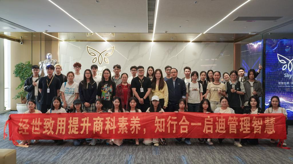 In order to deepen the implementation of “Visiting Businesses to Create Job Opportunities” initiative, strengthen communication and cooperation between GDUFS and enterprises, align talent demands, and explore ways to integrate industry, education, and research, the Deputy Chairperson of School of Business (SoB), SHEN Changxia, led a delegation to Guangdong Infinite Sky International Trade Co., Ltd. (hereinafter referred to as “Infinite Sky Group”) on the afternoon of April 17. The delegation conducted the “Visiting Businesses to Create Job Opportunities” initiative to promote employment. CHEN Jiangying, Director of the GR Department at Infinite Sky Group, and other relevant leaders warmly welcomed the delegation from SoB.