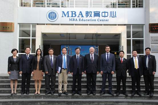 On October 16, 2014, Professor Mark Haydn Oakley (AMBA accreditation assessor), Professor WANG Zhongming (AMBA China Regional Head), and Mr. George Iliev (AMBA Director of International Affairs) visited GDUFS to carry out the AMBA pre-accreditation work for SoB's MBA program. GDUFS Vice President and Dean of SoB, HE Chuantian, who is also Director of the MBA Education Center, along with members of SoB leadership and personnel related to the accreditation work, participated in this pre-accreditation activity.