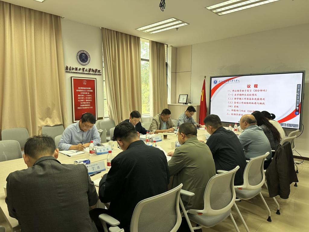 On the afternoon of March 3, 2025, HE Chuantian, Vice President of Guangdong University of Foreign Studies (GDUFS), accompanied by WU Min, Director of the Bidding and Procurement Center, YUAN Changqing, Director of the Center for Teaching Quality Management and Assessment, and ZHAO Deqiang, Deputy Director of the Office of Research Affairs, inspected School of Business (SoB) at the beginning of the semester and provided guidance on discipline development and talent cultivation. All members of SoB leadership team attended the meeting.