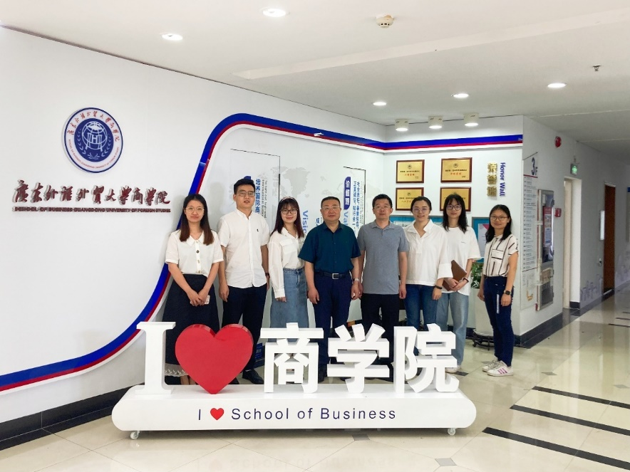 On the morning of May 23, to thoroughly study and implement the spirit of the 20th National Congress of the CPC, launch the thematic education campaign on Xi Jinping Thought on Socialism with Chinese Characteristics for a New Era, and implement the requirement of Guangdong University of Foreign Studies (GDUFS) for in-depth investigation and research, the In-depth Investigation by the Development and Planning Division and School of Business (SoB), along with the Symposium on 14th Five-Year Plan Discipline Development was successfully held in Room 360, Faculty Building on the University Town Campus. YUAN Denghua, Executive Dean of SoB, LIU Xiang, Deputy Director of the Development and Planning Division, and others attended the meeting. The meeting was chaired by YUAN Denghua.