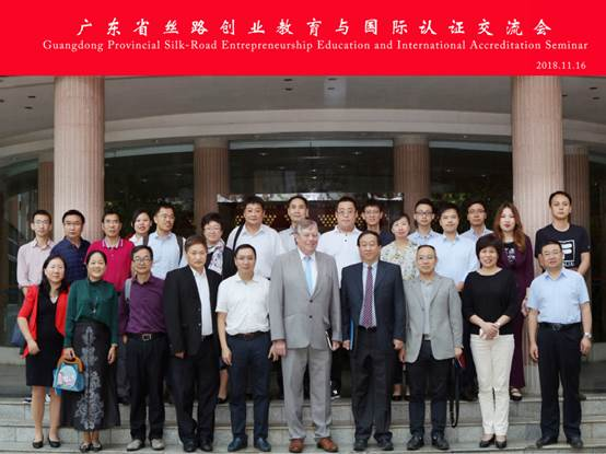 On November 16, 2018, the Guangdong Provincial Silk-Road Entrepreneurship Education and International Accreditation Seminar was successfully held in the Third Meeting Room of GDUFS Baiyun Mountain Campus. The exchange was hosted by the Silk-Road Entrepreneurship Education Network and organized by GDUFS SoB. Over 30 representatives from ten institutions, including South China University of Technology, Jinan University, South China Normal University, South China Agricultural University, Shantou University, Guangdong University of Technology, Guangdong University of Finance & Economics, Guangzhou University, and Dongguan University of Technology, attended. The meeting was presided over by Professor WANG Zhongming, President of the Silk-Road Entrepreneurship Education Network, AMBA China Regional Head, and senior professor at Zhejiang University.