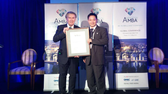 On May 14, 2015, at the AMBA Global Conference for Deans and Directors in Prague, capital of the Czech Republic, hosted by the Association of MBAs (AMBA), Sir Paul Judge, Chairperson of the AMBA International Management Board, presented an accreditation certificate to Associate Dean ZHU Wenzhong (the representative of SoB) on behalf of the association. This signifies that the MBA program of GDUFS SoB has met the requirements of AMBA international accreditation and officially obtained AMBA accreditation, becoming the 26th business school in the Chinese mainland and the 225th worldwide to pass AMBA accreditation.
